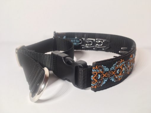 • Collars are 1 1/2″ width webbing on bottom with Jacquard Ribbon pattern on top layer.